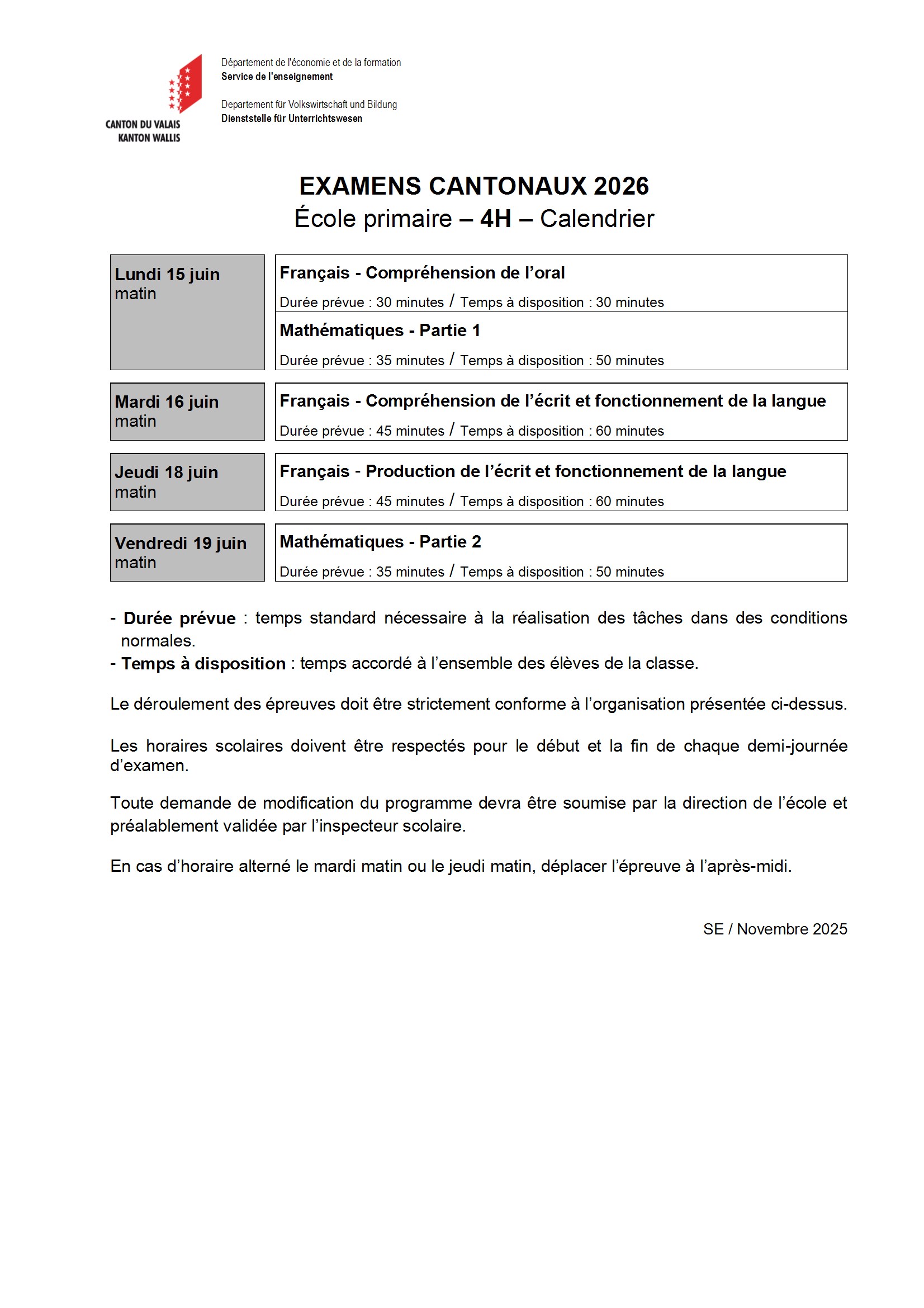 Programme détaillé 4H